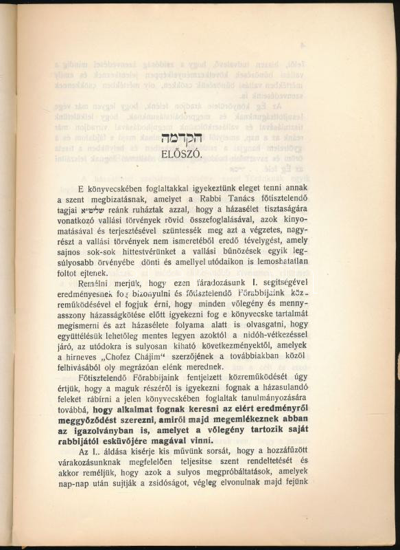 Leírás: Wieder Sulem - Pollák Emánuel - Jungreisz Jakab - Blasz Ede: A zsidó házasélet törvényei. Bp., Orthodox Központi Bizottság Rabbicollégiuma, 30p