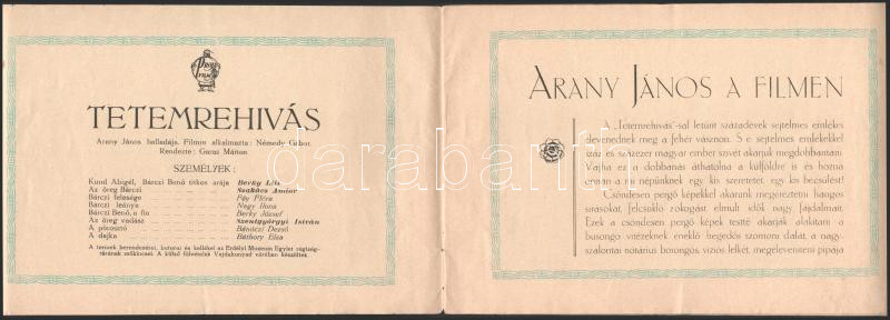 1934 A Tetemrehívás, Arany János műve alapján készült film ismertető p... https://www.darabanth.com/hu/512-Gyorsarveres/512.0/Mutargy-papirregiseg-egyeb/Nyomtatvanyok~688/1934-A-Tetemrehivas-Arany-Janos-muve-alapjan-keszult-film-ismerteto-prospektusa~II3457680