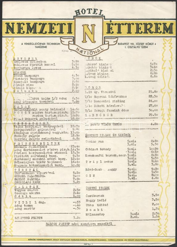 1963, 1965 Kereskedelmi Vendéglátó Vállalat és a Hotel Nemzeti Étterem... https://www.darabanth.com/hu/512-Gyorsarveres/512.0/Mutargy-papirregiseg-egyeb/Nyomtatvanyok~688/1963-1965-Kereskedelmi-Vendeglato-Vallalat-es-a-Hotel-Nemzeti-Etterem-etlapja-2-db-hajtott~II3457692