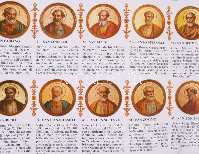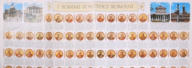 Leírás: A római pápák kronológiája Szent Pétertől II. János Pál pápáig, nagyméretű poszter, kétoldalas, kis sérülésekkel, 100x70 cm