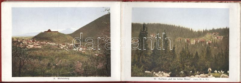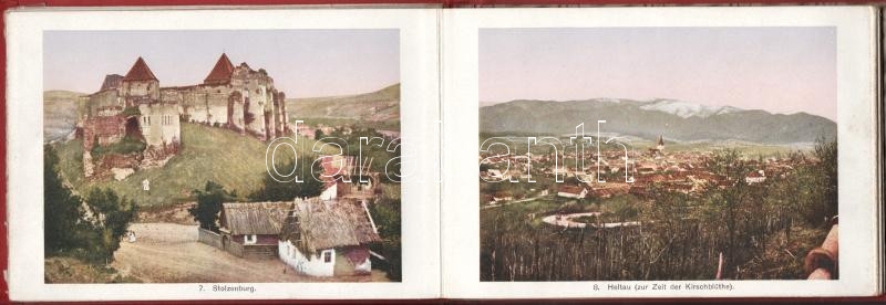 Leírás: cca 1910 Hermannstadt und Umgebung leporelló, feliratozott színes képekkel, 15 db kép, kettőn törésnyom, foltos borító, 12×18 cm