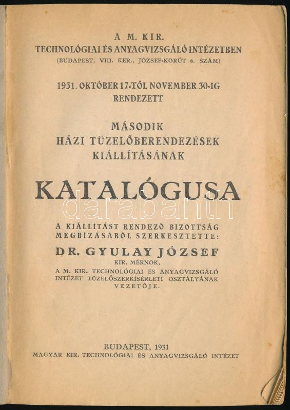 Leírás: 1931. okt. 17-től nov. 30-ig rendezett második házi tüzelőberendezések kiállításának katalógusa , KIhajtható ábrákkal, térképekkel, néhány lapon ceruzás firkákkal.