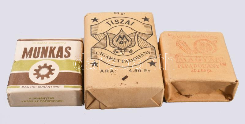 Leírás: Munkás cigaretta, 25 darabos, bontatlan + magyar pipőadohány, + tiszai pipadohány, bontatlanok