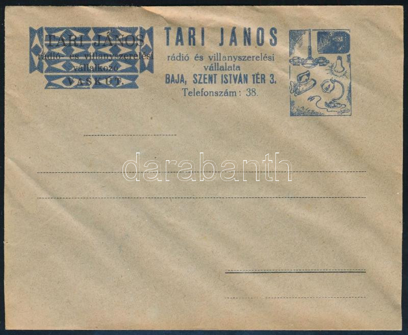 Leírás: Tari János rádió- és villamosszerelési vállalatának fejléces borítékja