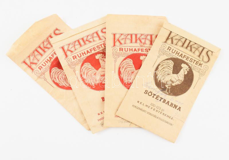 Leírás: cca 1920-1930 4 darab Kakas ruhafesték tasak, 14x8 cm