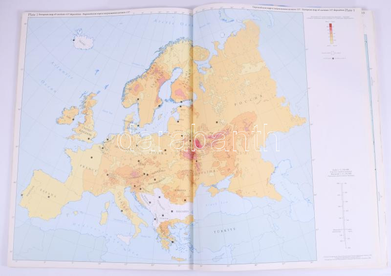 1998 Atlas of Caesium Deposition on Europe after the Chernobyl Accident. / Atlasz a csernobili atomerőmű-balesetet követő cézium-szennyeződésről Európában. Számos térképpel illusztrálva. Angol és orosz nyelven. Kiadói papírkötés.