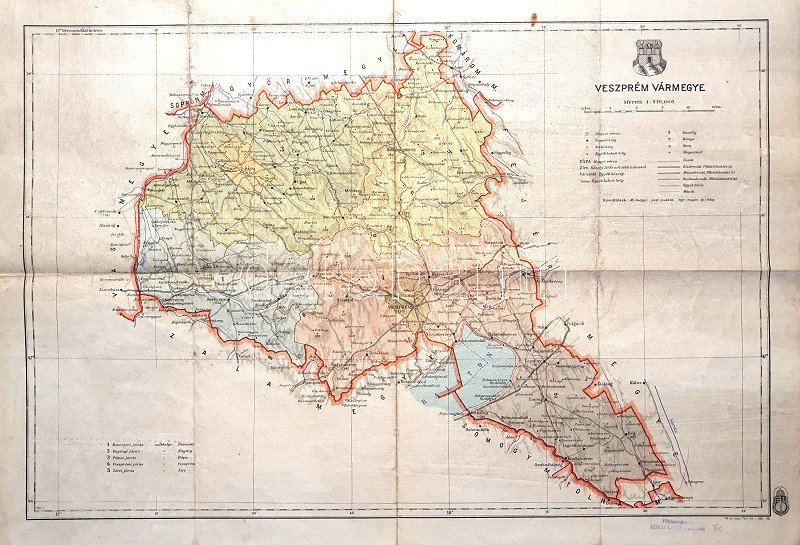 [Térkép] Veszprém vármegye térképe. Mérték: 1:335,000. (1941).