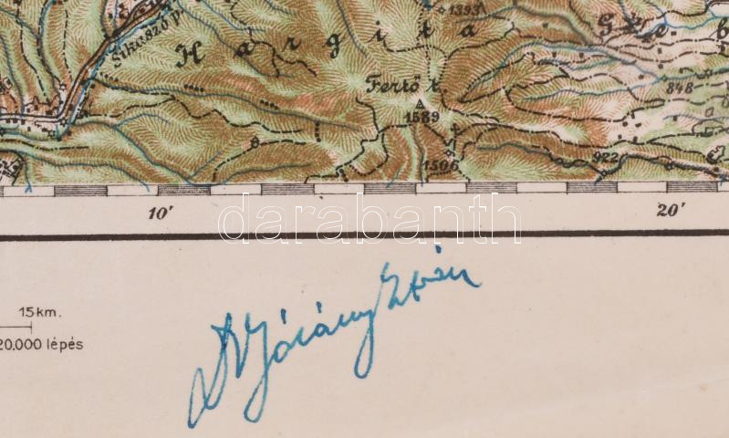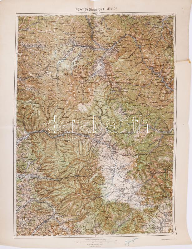 Leírás: cca 1920-1930 Gyergyószentmiklós környékének katonai térképe, 1 : 200.000, M. Kir. Állami Térképészet, lapszéli sérüléssel, 62,5x46,5 cm