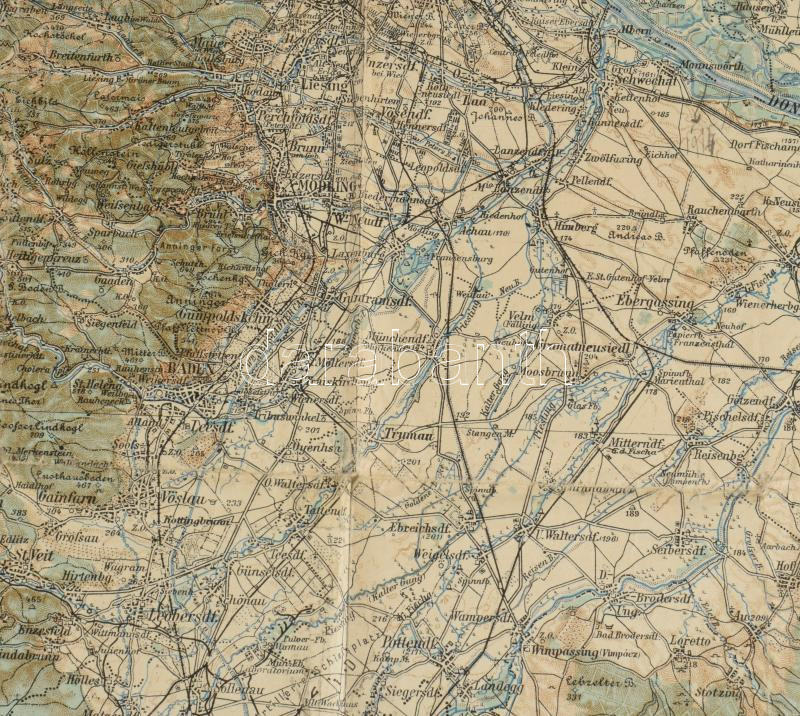 Leírás: cca 1920 Bécs környékének katonai térképe, 1 : 200.000, Militärgeographisches Institut, kissé viseltes állapotban, 65x46 cm