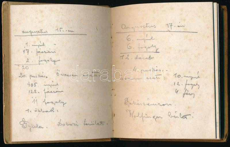 Leírás: 1910-1914 Az Orosházi Szent László Vadásztársaság levelezőlapja, jelvénye, illetve egy vadászati napló