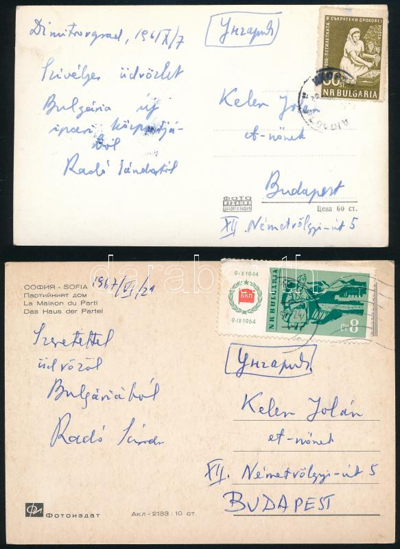 1961-1967 Radó Sándor ("Dóra") (1899-1981) Kossuth-díjas földrajztudós, térképész, egyetemi tanár, az MTA tagja 2 db saját kezűleg megírt, aláírt képeslapja, Kelen Jolánnak (1891-1979) címezve