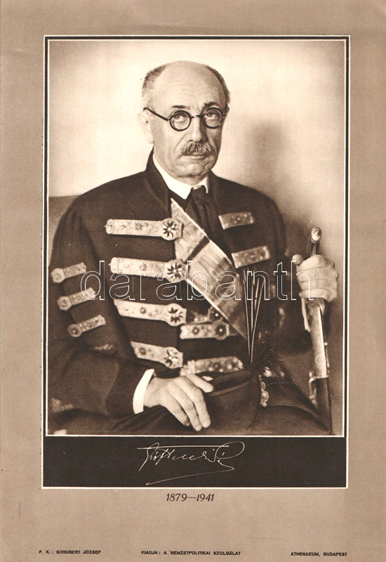 Politikai aprónyomtatványunkon gróf Teleki Pál (1879-1941) volt magyar királyi miniszterelnök portréja.