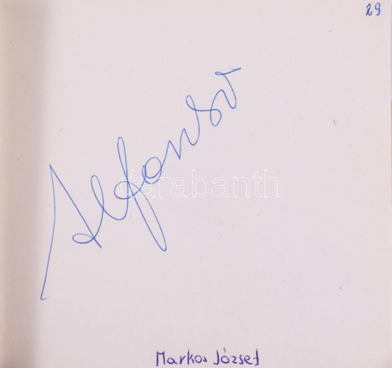 Autogramgyűjtemény, többek között Bessenyei Ferenc, Kautzky József, Szőnyi János, Voith Ági, Bodrogi Gyula, Máté Péter, Bán György, Markos József, Vitár Róbert, Bárdy György, Zsolnai Hédi, Verebély Iván, Viola Mihály, Váradi Hédi, Ernyei Béla, Sinkó László, Pécsi Ildikó és mások aláírásával