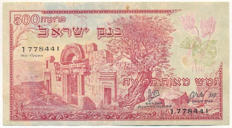 Krause P#?24 https://www.darabanth.com/hu/512-Gyorsarveres/512.0/Numizmatika/Kulfoldi-bankjegyek~242/Izrael-1955-500p-TF3Cbr-3E-Isrel-1955-500-Pruta-CF3Cbr-3E-Krause-P2324~II3461509