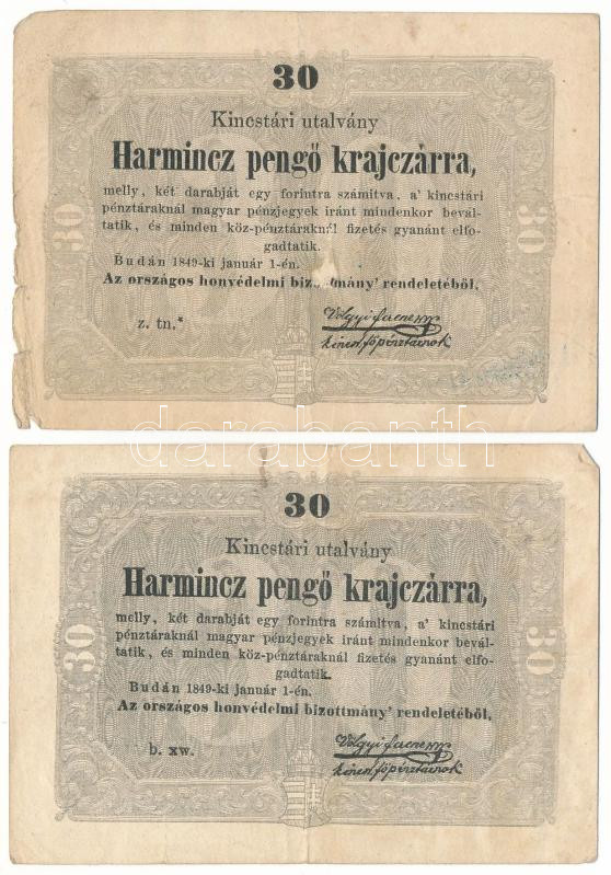 1849. 30kr "Kossuth bankó" (2x) T:F-VG