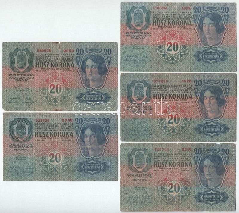 Leírás: 1913. 20K (5x) felülbélyegzés nélkül T:F,VG