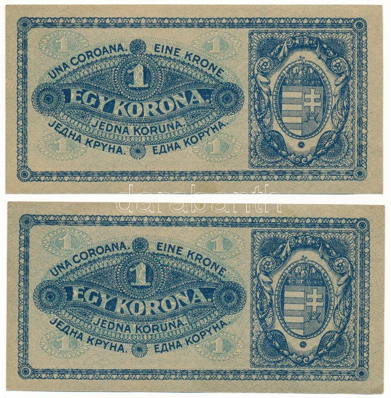 Leírás: 1920. 1K (2x) sorszámkövetők "aa 013 482769 - aa 013 482770" T:XF