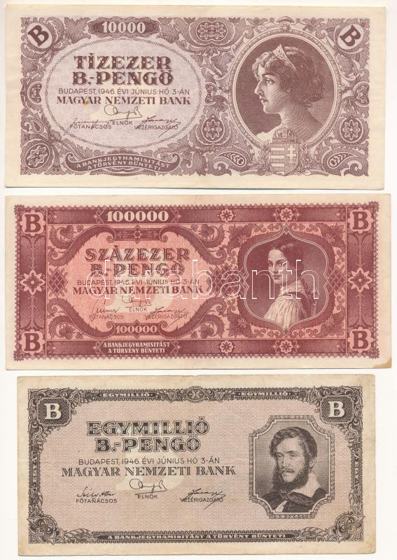 1946. 10.000BP + 100.000BP + 1.000.000BP T:F közte szép papír https://www.darabanth.com/hu/512-Gyorsarveres/512.0/Numizmatika/Magyar-bankjegyek~235/1946-10000BP-plus-100000BP-plus-1000000BP-TF-kozte-szep-papir~II3456809