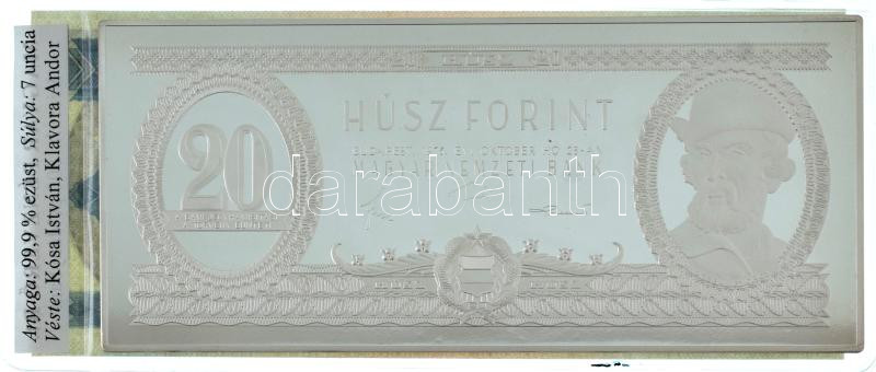 Leírás: 1975. 20Ft Ag bankjegyveret (217,7g/7 uncia/0.999/70x154mm) + 1980. 20Ft fóliatokban T:PP,UNC