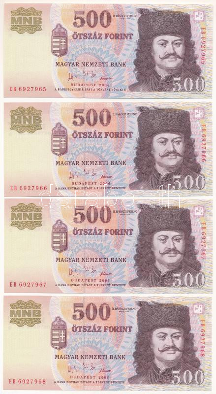 Leírás: 2006. 500Ft "A forradalom 50. évfordulója 1956. október 23. " (4x) sorszámkövetők "EB 6927965 - EB 6927968" T:AU