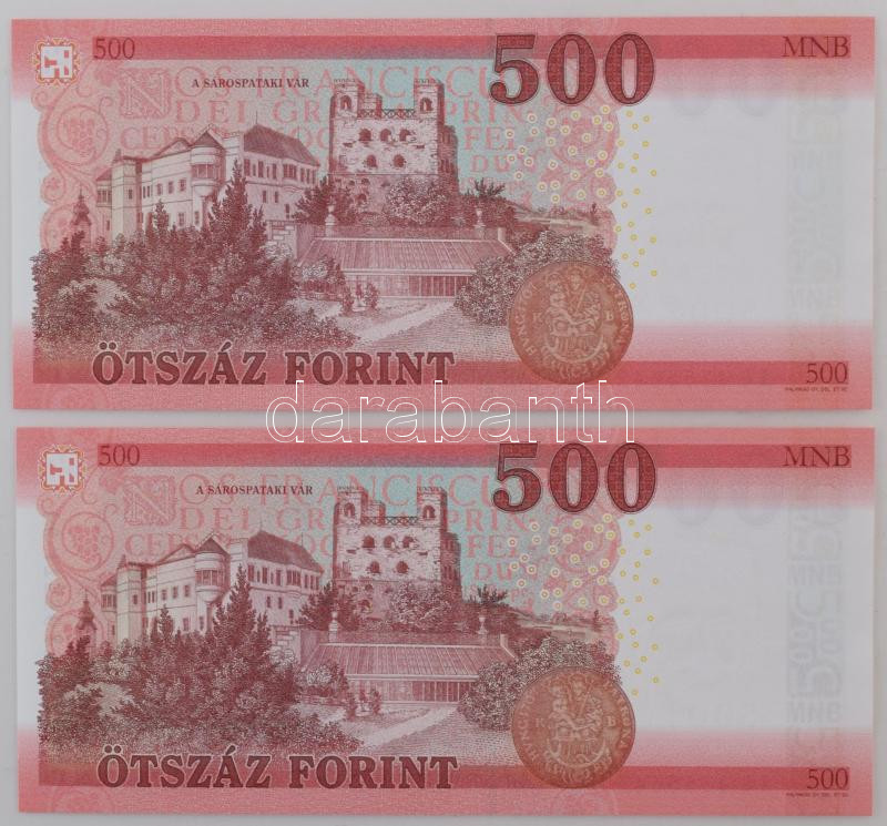 Leírás: 2018. 500Ft (2x) sorszámkövetők "EG 4755642 - EG 4755643" T:UNC,AU, hullámos papír