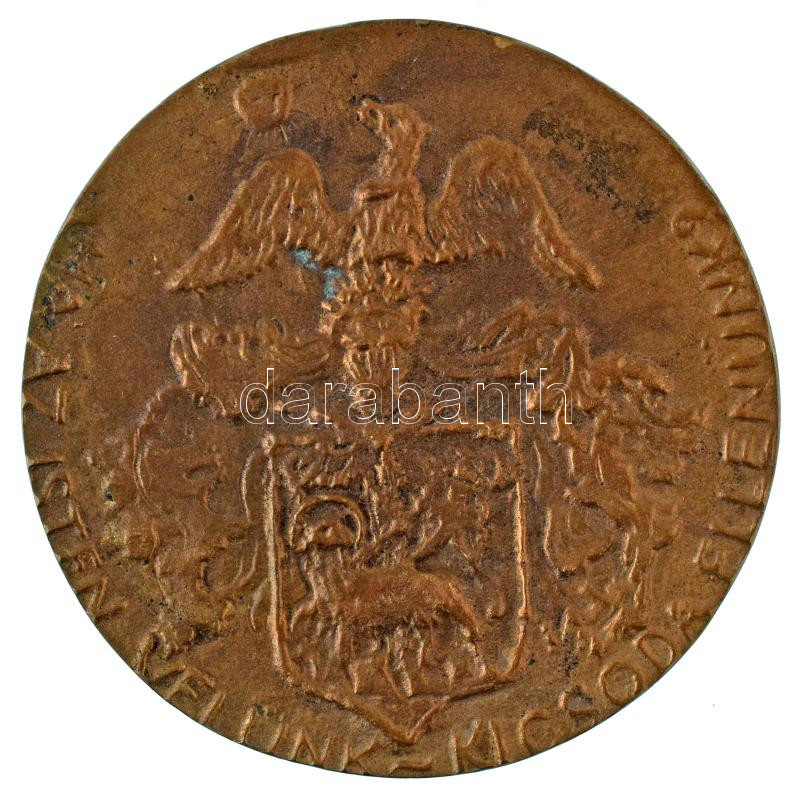 1977. "A debreceni református kollégium felújítása emlékére - Debrecen 1977 / Ha az Isten velünk- Kicsoda ellenünk?" kétoldalas, öntött bronz emlékérem (94mm) T:XF, patina