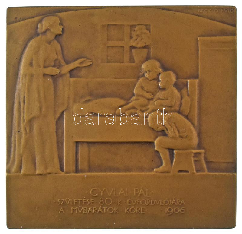 Beck Ö. Fülöp (1873-1945) 1906. "Gyulai Pál születése 80-ik évfordulójára a műbarátok köre 1906" bronz emlékplakett (74,5x77mm) T:AU