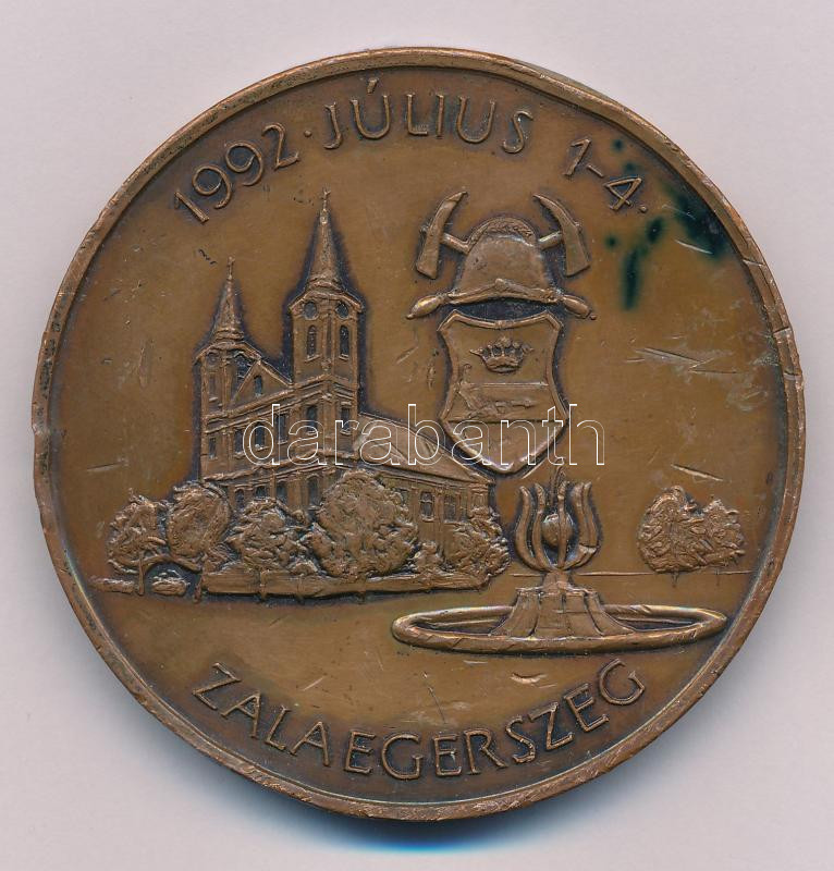 Fritz Mihály (1947-) 1992. "XIII. Országos Tűzoltóverseny / 1992. július 1-4. Zalaegerszeg" kétoldalas bronz emlékérem (61,5mm) T:VF, ütődés, karc, ph.
