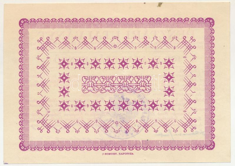 1945. Kaposvár 100P "Pénztári utalvány" tinta aláírással, bé... https://www.darabanth.com/hu/512-Gyorsarveres/512.0/Numizmatika/Papir-es-fem-szuksegpenzek~234/1945-Kaposvar-100P-Penztari-utalvany-tinta-alairassal-belyegzessel-035795-sorszamma~II3463487