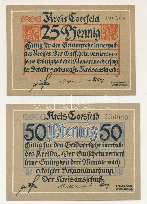 Német Birodalom / Weimari Köztársaság / Kreis Coesfeld 1920 k. 25pf-50pf (2xklf) T:AU