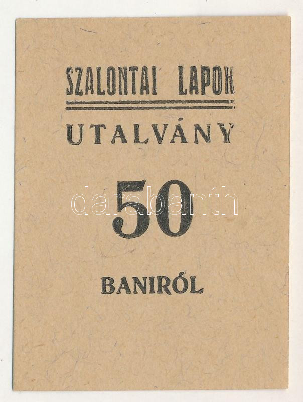Romania cca 1920. Nagyszalonta (Salonta) 50 Bani "Szalontai Lapok " voucher C:AU