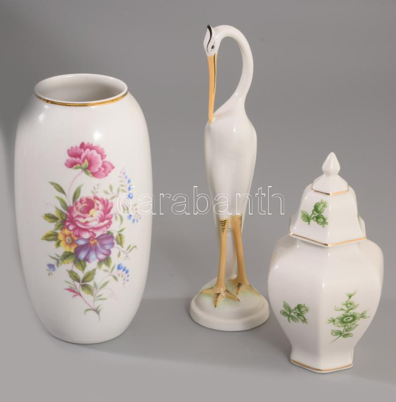 Hollóházi 3 darab dísztárgy, gém, váza, fedeles váza. Jelzett, hibátla... https://www.darabanth.com/hu/512-Gyorsarveres/512.0/Porcelan-keramia-uveg/Porcelan~570/Hollohazi-3-darab-disztargy-gem-vaza-fedeles-vaza-Jelzett-hibatlan-m-20-5-cm~II3460474