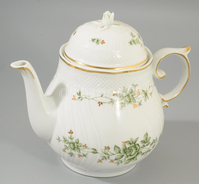 Leírás: Hollóházi Erika mintás 6 személyes teás- és kávés készlet. Jelzett, teljes, kis kopással.