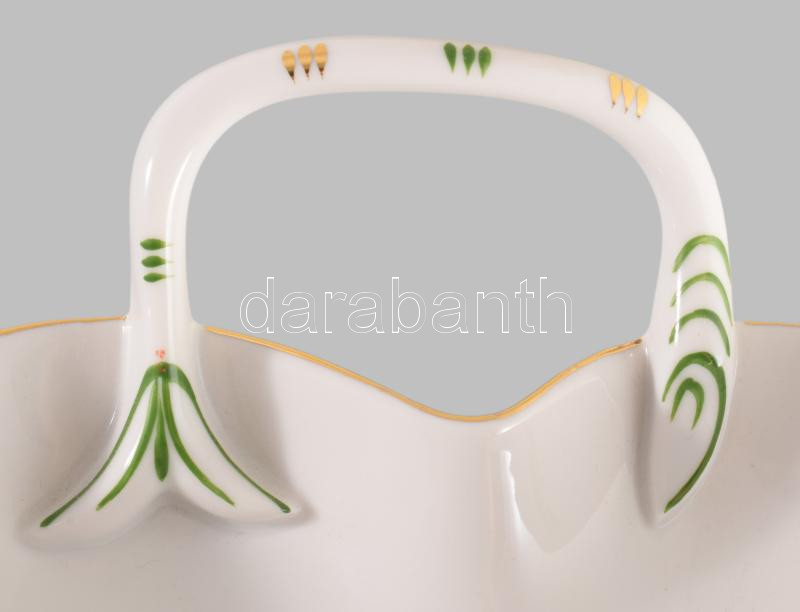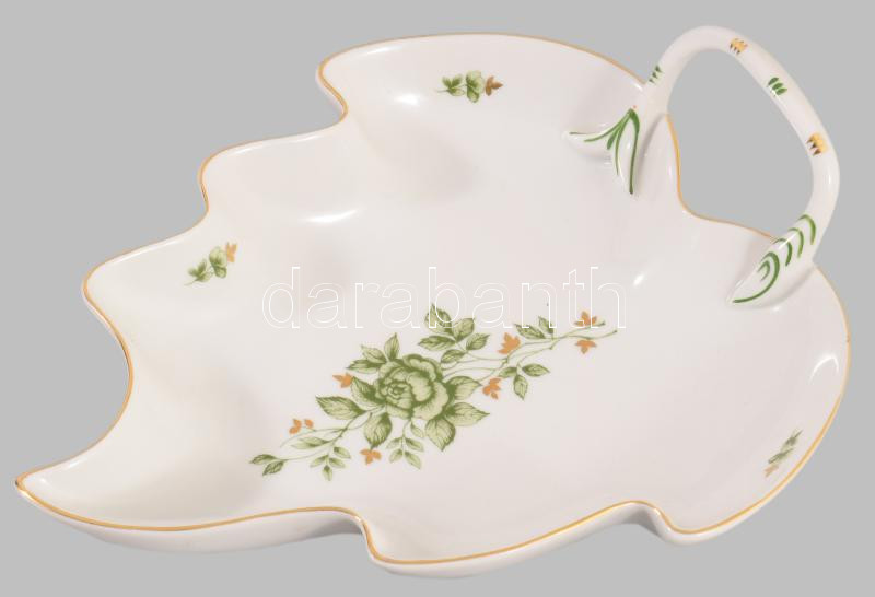 Leírás: Hollóházi Erika mintás levél alakú kínáló, jelzett, hibátlan, 23x18 cm