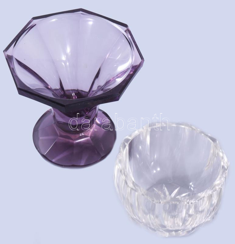 Leírás: 2 darab art deco kristály ékszertartó edény, m: 8,5 cm