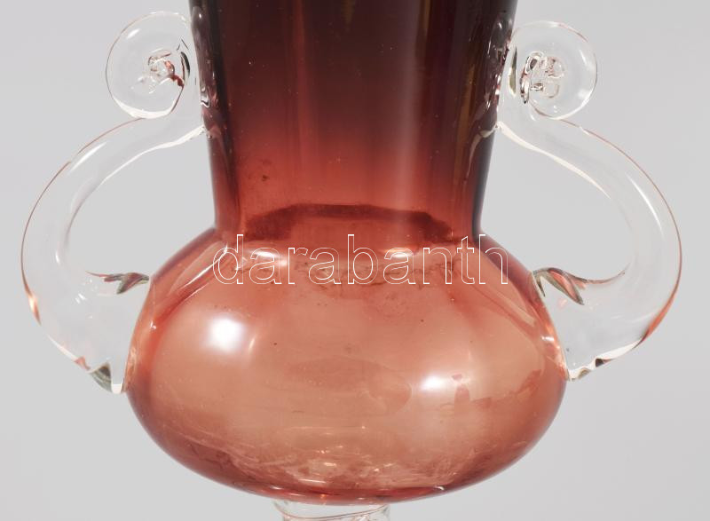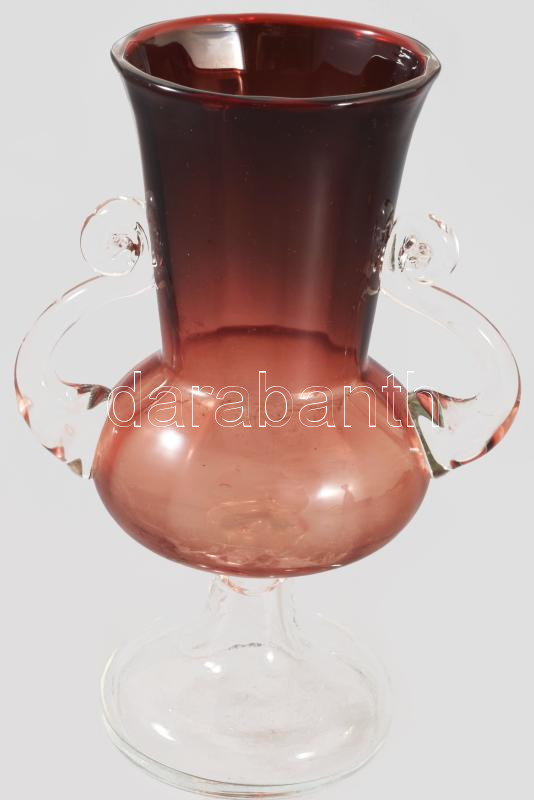 Leírás: Anyagában színezett bordás talpas váza. Jelzés nélkül, hibátlan, m: 21 cm