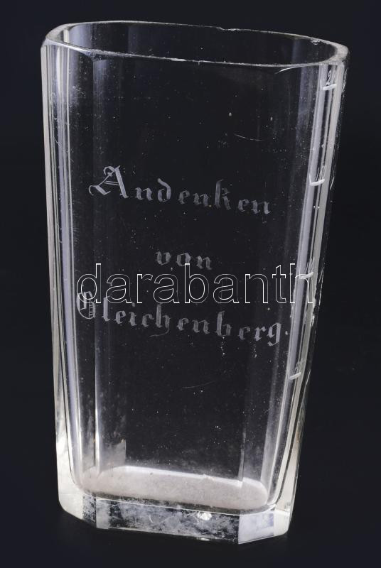 Leírás: Bleichenbergi fürdőpohár, cca 1880-1900, fazettált pattogzással, m: 14 cm
