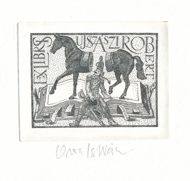 Leírás: Orosz István (1951-): Ex libris Ujszászi Róbert. Rézkarc, papír, jelzett. 5,5×7 cm