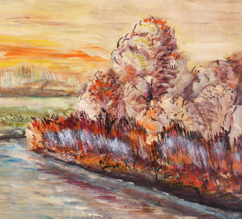 Leírás: Farkas Gy. jelzéssel: Őszi táj. Olaj, farost, fa keretben 50x36 cm