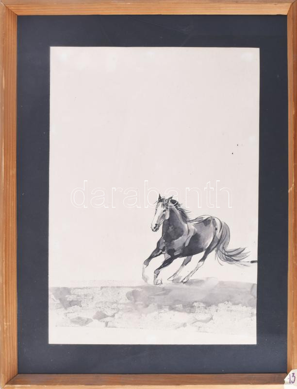 Jelzés nélkül: Ló. Tus, papír, üvegezett fakeretben. 42,5x30 cm. https://www.darabanth.com/hu/513-Festmeny-grafika-plakat-ex-libris-arveres/514.0/Festmenyek-es-grafikak/Festmenyek-es-grafikak-jelzessel-jelzes-nelkul~1/Jelzes-nelkul-Lo-Tus-papir-uvegezett-fakeretben-42-5x30-cm~II3465948