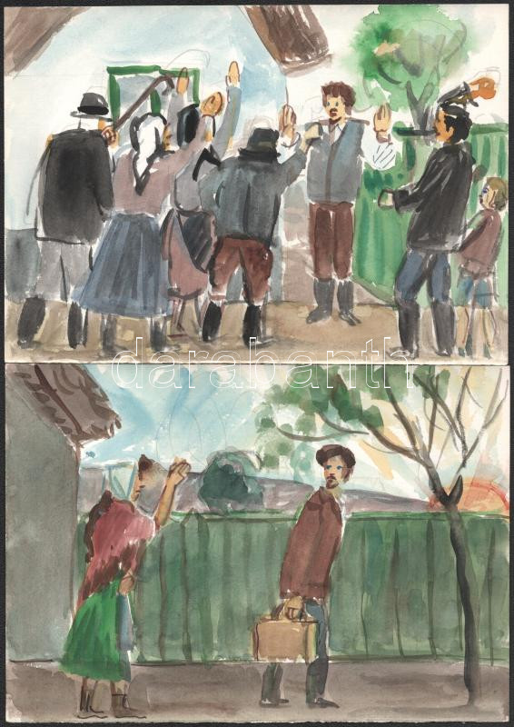 Leírás: Jelzés nélkül, XX. sz. második fele: 22 illusztráció Petőfi Sándor Apostol c. művéhez. Akvarell, ceruza, papír. 15x21,5 cm