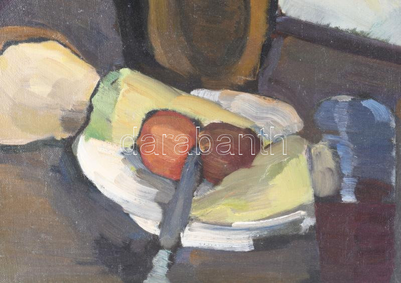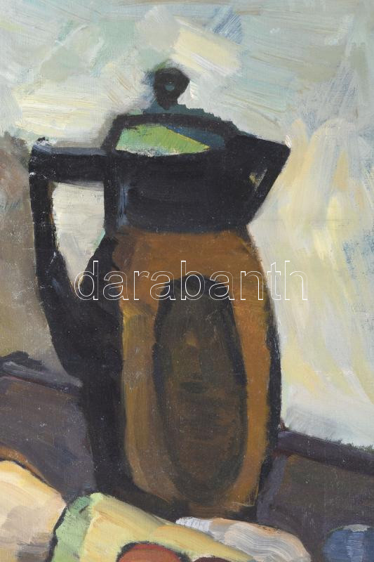 Jelzés nélkül, magyar festő, XX. sz. első fele: Csendélet kancsóval. Olaj, vászon. Restaurált, dublírozott. Proveniencia: Saphier-gyűjtemény. 49,5x32,5 cm