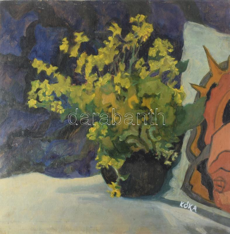 Leírás: Kóka jelzéssel: Csendélet. Olaj, farost, jelzett, 50x50 cm