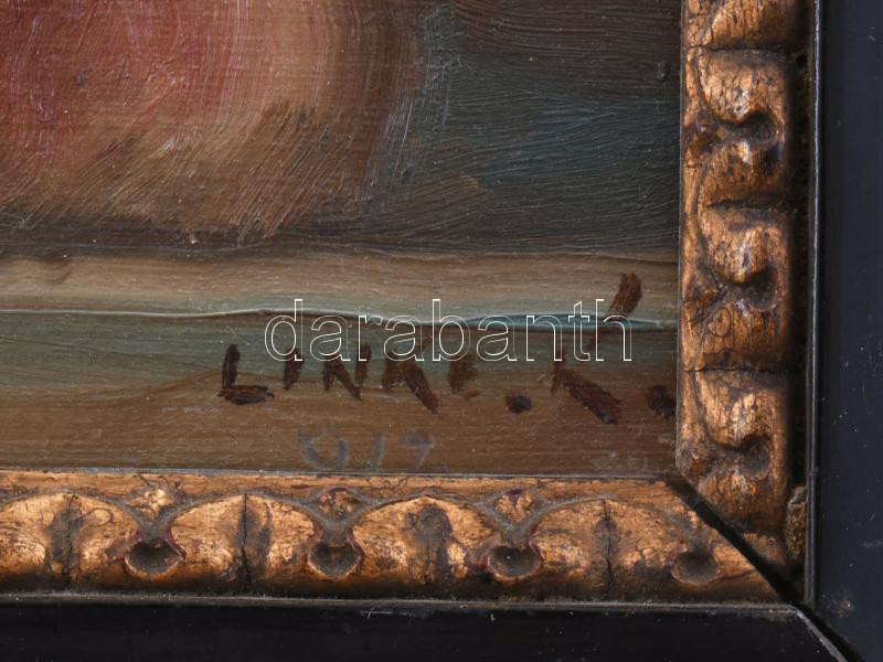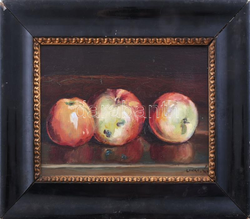 Leírás: Linke K. jelzéssel, XX. sz. eleje: Csendélet. Olaj, karton. Sérült. Dekoratív, kissé sérült fakeretben. 18x25 cm