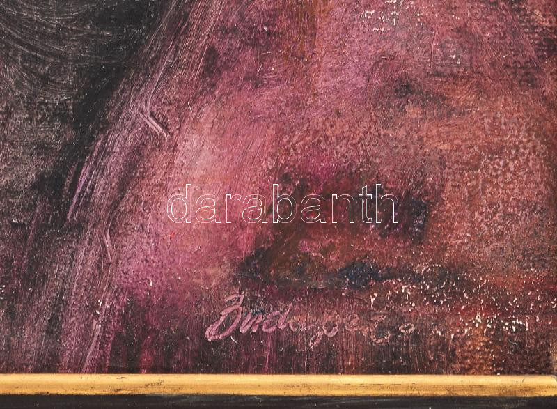 Leírás: Olvashatatlan (Buda...?) jelzéssel: Szürrealista portré. Akvarell, papír. Kartonra kasírozva. 42,5x29 cm. Dekoratív, kissé sérült fakeretben.