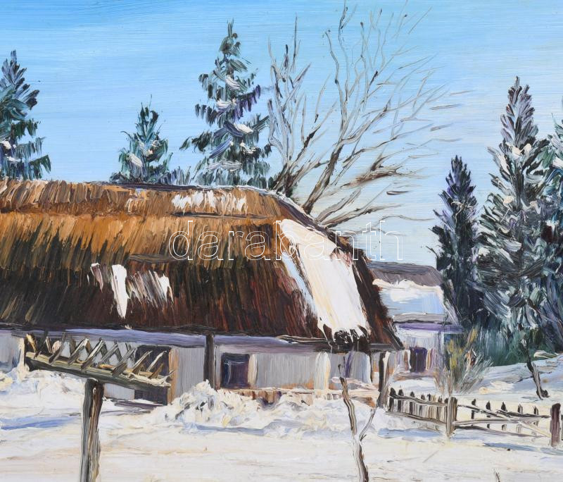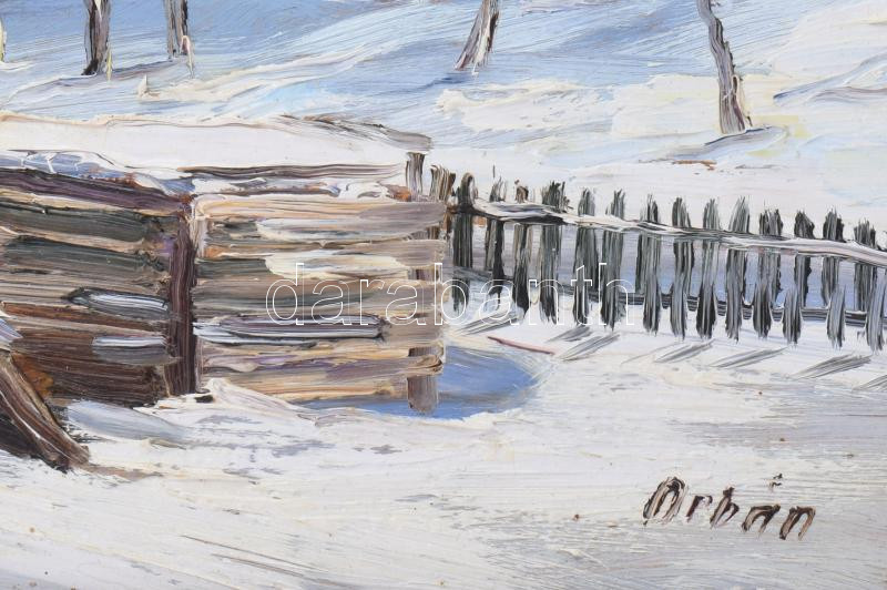 Leírás: Orbán jelzéssel: Téli falu. Olaj, farost. Keretben. 32x48 cm