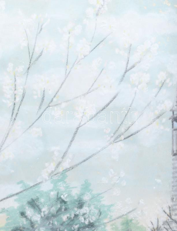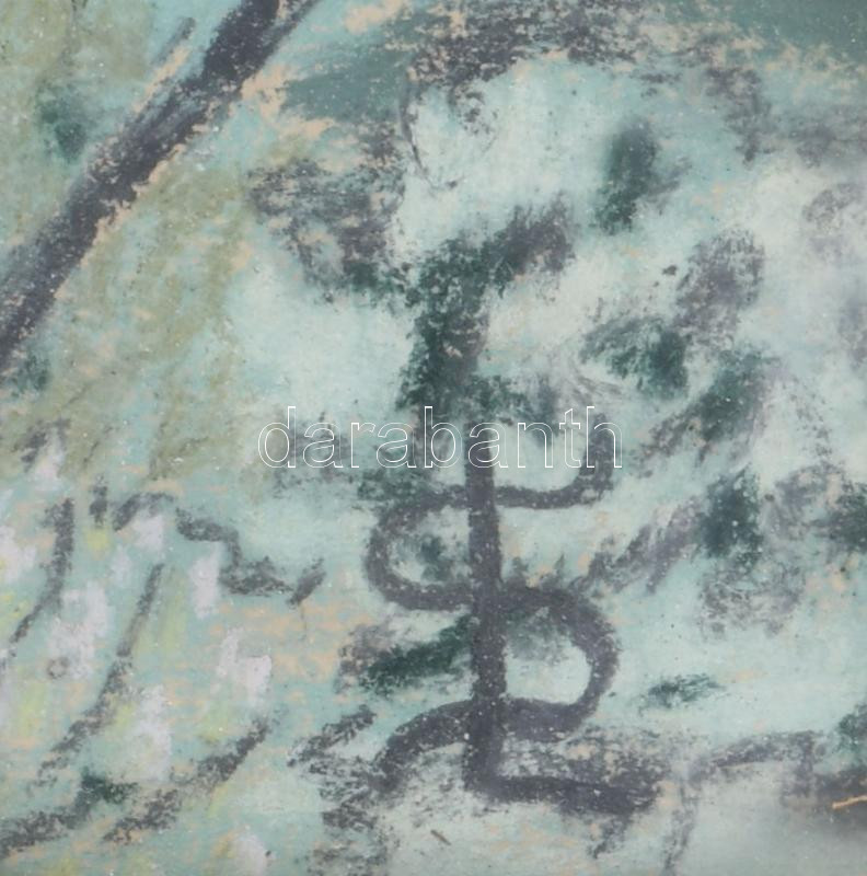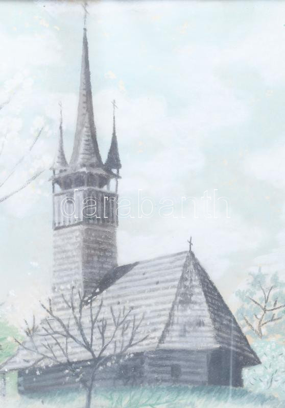 Leírás: SL vagy LS monogram jelzéssel: Erdélyi fatemplom. Pasztell, papír. Dekoratív, üvegezett, kissé sérült fakeretben. 42x62 cm