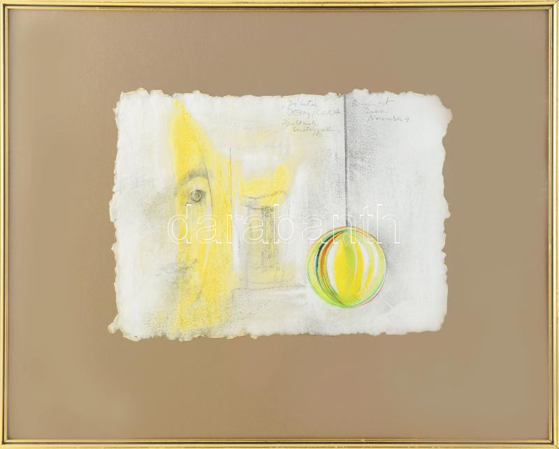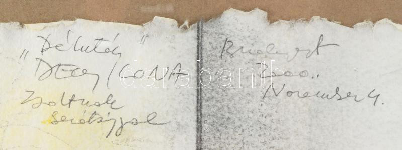 Leírás: Decsi Ilona (1950-): Délután, 2000. Akvarell, ceruza, merített papír, jelzett, Decsi Ilona autográf ajánlásával. Üvegezett fakeretben, 21,5×30 cm