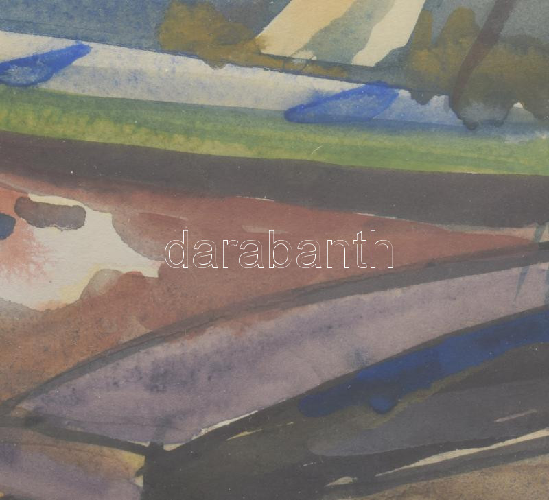 Kőhegyi Gyula (1933-): Csónakok a mederben. Akvarell, papír. Jelzett, ... https://www.darabanth.com/hu/513-Festmeny-grafika-plakat-ex-libris-arveres/514.0/Festmenyek-es-grafikak/Festmenyek-es-grafikak~4/Kohegyi-Gyula-1933-Csonakok-a-mederben-Akvarell-papir-Jelzett-uvegezett-keretben-32x35-~II3470241