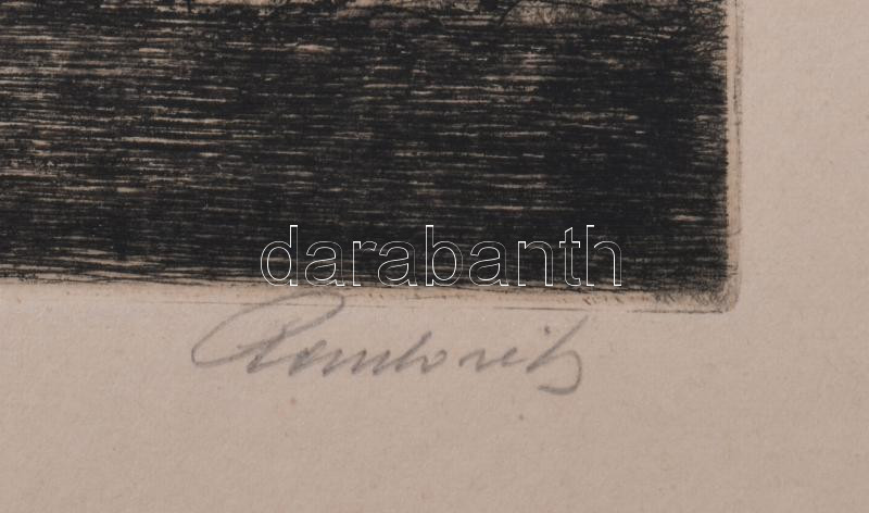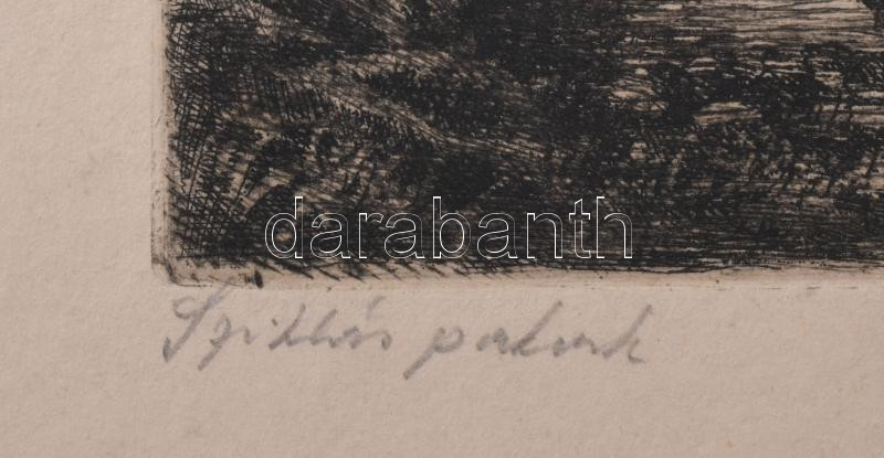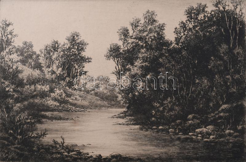 Leírás: Paulovits Pál (1892-1975): Sziklás patak. Rézkarc, papír, jelzett, kartonra kasírozva, lapszéli elszíneződésekkel, 19,5×29 cm